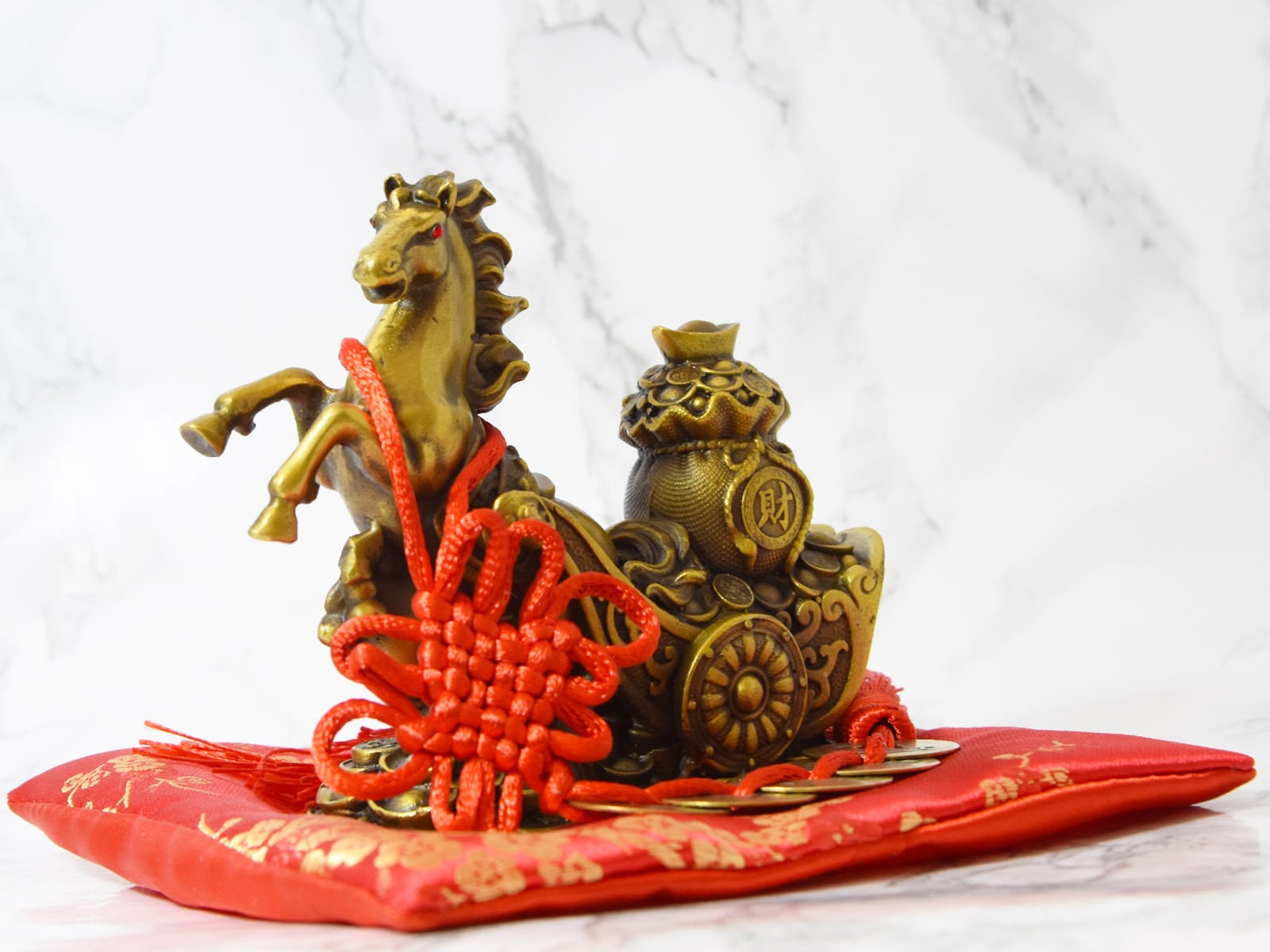 馬 置物 干支 午年 五帝銭付き 赤座布団付き 風水 黄銅製
