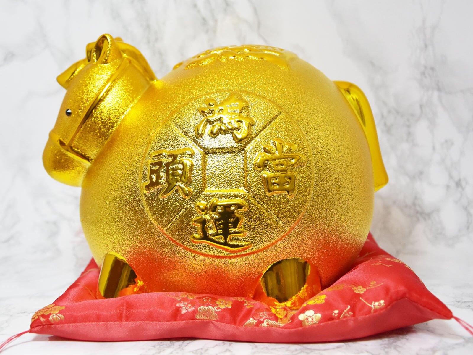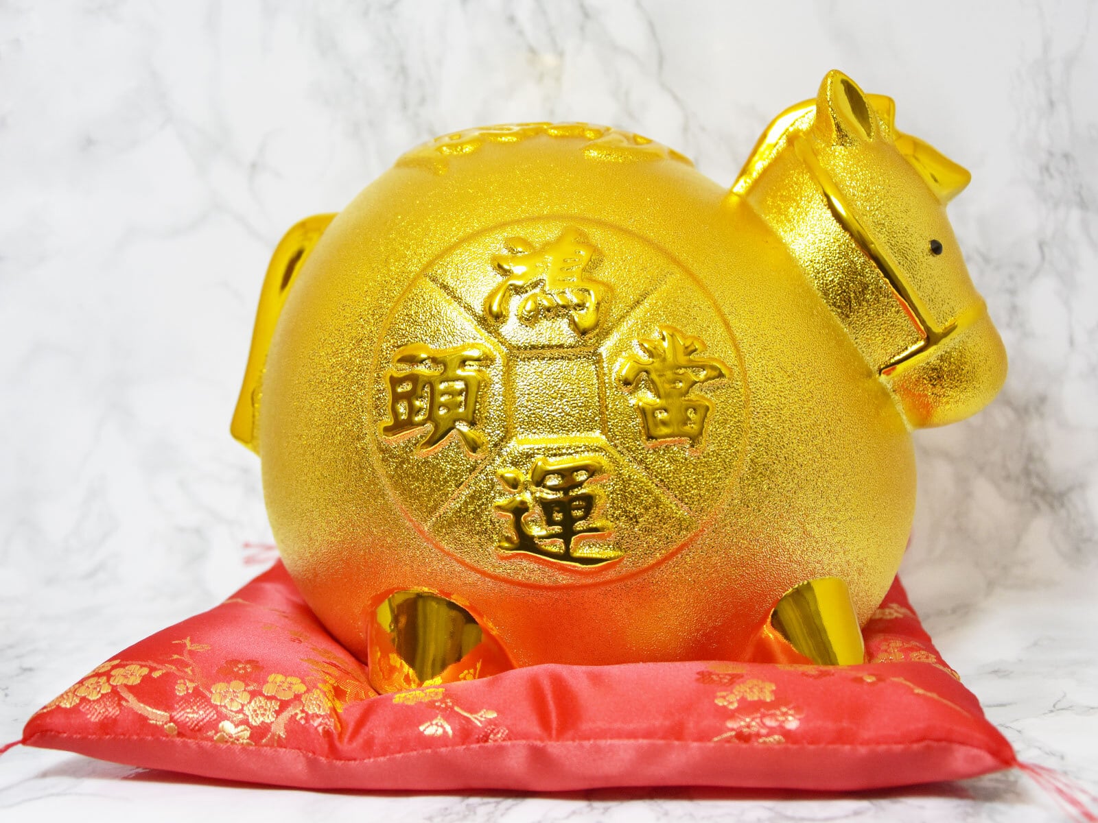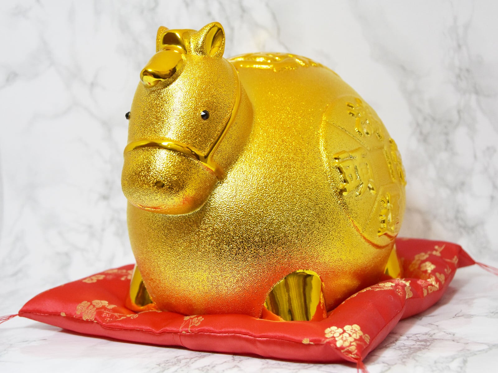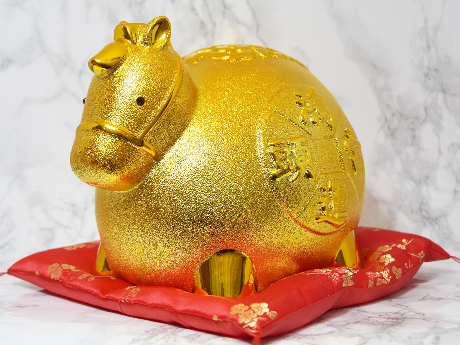 黄金の馬 置物 貯金箱 午年 招財 金運 仕事運 赤座布団付