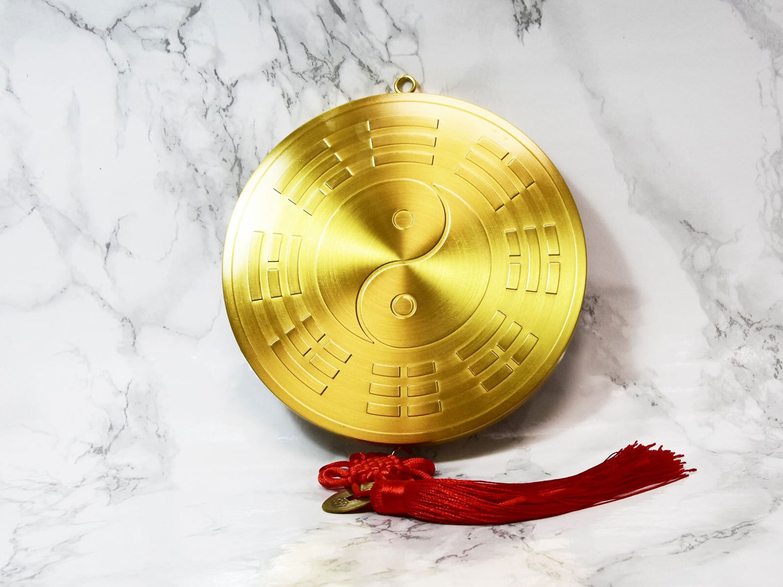 中央に宇宙万物の根源を表す「太極」を配置し、周りには全方位からの邪の気から身を護り風水上の理想的な環境を表す「八卦」を配置しています。