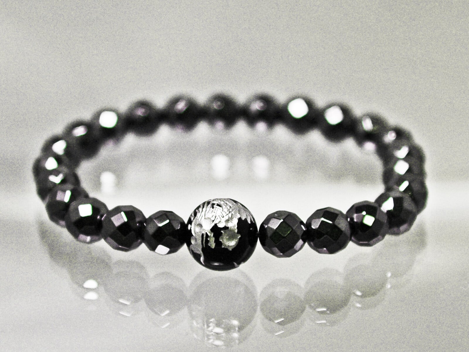 パワーストーン ブレス 天然石 ブラックオニキス(ブラックカルセドニー)12mm 銀色 龍 手彫 (親玉) ・ヘマタイト (64面)8mm ゆうパケット対応